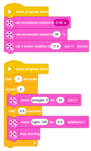 - Χρήση μετρήσεων (αποστάσεις, μοίρες στροφής) για τον προγραμματισμό.