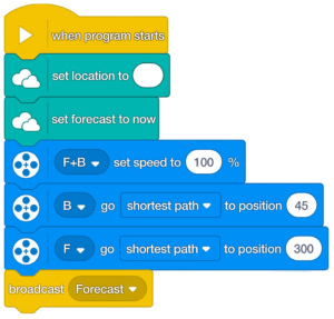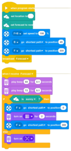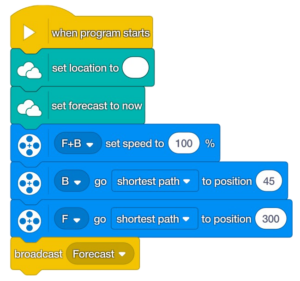 Σε αυτή τη δραστηριότητα, οι μαθητές κατασκευάζουν και προγραμματίζουν έναν “προγνώστη καιρού” που χρησιμοποιεί δεδομένα cloud για να εμφανίζει την πρόγνωση καιρού για τις επόμενες ώρες, ενισχύοντας την κατανόηση της χρήσης δεδομένων και των συνθηκών στον προγραμματισμό.